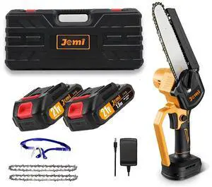 Toytexx Inc 6" Cordless Mini Chainsaw: Brushless Motor, 2 Batteries, Carry Case (Yellow)