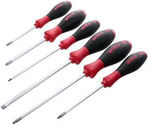 Wiha 30291 SoftFinish Grip ScrewDriver Set, Slotted 4.5-6.5mm, Phillips Number 1-2 and Square Number 1-2, 6-Piece Set