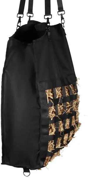 Hay Bag for Horses, 21.65 x 7.28 x 25.2 in, 1.81 x 1.81 in Holes, Premium Nylon Construction with PVC Waterproof Coating, Adjustable Hanging Straps and Metal Hooks, Slow Feed Hay Bag for Horses