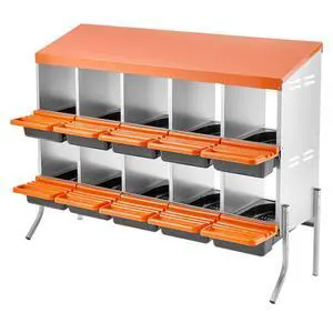 Chicken Nesting Boxes, 10 Compartments, with Support Legs, Easy Egg Collection, Galvanized Steel and High-Strength Plastic, Roll Away Nesting Boxes for Chickens and Hens Laying Eggs, Orange