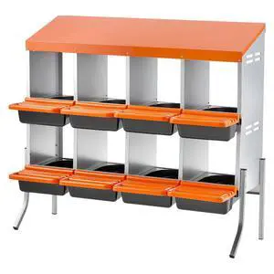 Chicken Nesting Boxes, 8 Compartments, with Support Legs, Easy Egg Collection, Galvanized Steel and High-Strength Plastic, Roll Away Nesting Boxes for Chickens and Hens Laying Eggs, Orange