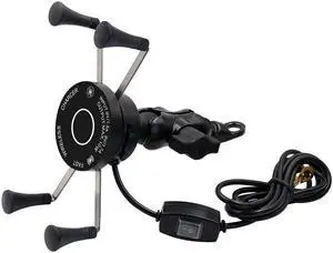 2in1 Motorcycle Phone Mount Holder With Wired Wireless Charger Fast Charging