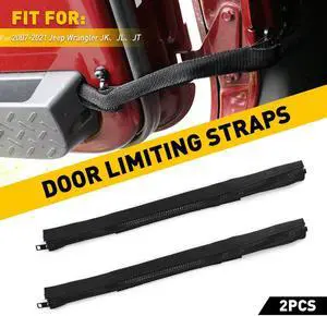 2 Pcs Door Limiting Straps for Jeep Wrangler JK JKU Door Strap with Zipper Black