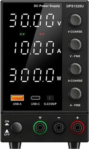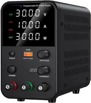 Laboratory Power Supply, DC Adjustable Power Supply 30V 10A with USB Fast Charge Display, 4-Digit LED Display(30V 10A WPS3010H)