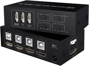 4 Port KVM Switch Dual Monitor HDMI 4K 60Hz, HDMI KVM Switch for 4 Computers 2 Monitors with USB 2.0 HUB and Cables