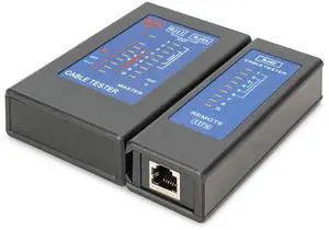 DIGITUS Network Cable Tester - for RJ45 & RJ11 Cable - with PoE Tester - Shielding Detection - for CAT 5, CAT 5e, CAT 6 and CAT 6A Cable - Black