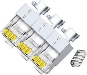 50 Pcs Cat7 Cat7A RJ45 Connectors, Cat7 Cat7A RJ45 Plugs, Sheilded RJ45 8P8C Cat7/Cat7A up to 10Gbps for Ethernet LAN Cable, Silver