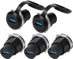 5PCS USB3.0 Panel Mount Connector,USB Pass Through Cable Coupler Female to Female Extension Adapter with Waterproof/Dust Cap (USB3.0)