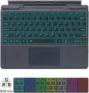 BONAEVER Type Cover for 13 inch Microsoft Surface Pro 10 / Pro 9 / Pro 8 / Pro X, Portable Bluetooth Wireless Keyboard with 7-Color Backlits/Touchpad/Pencil Holder