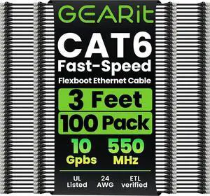 GearIT 100-Pack Cat6 Patch Cable 3 Feet Cat 6 Ethernet Cable Snagless Flexible Soft Tab - Preimum Series - Black