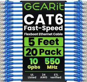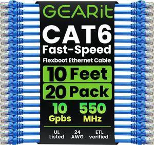GearIT 20-Pack Cat6 Patch Cable 10 Feet Cat 6 Ethernet Cable Snagless Flexible Soft Tab - Preimum Series - Blue