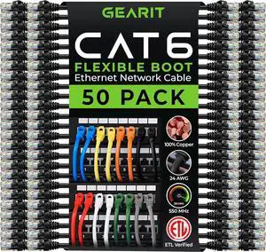 GearIT Cat6 Patch Cable Cat 6 Ethernet Cable Snagless Flexible Soft Tab - Preimum Series, Black (1.5 Feet (50-Pack), Black)