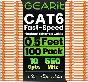 GearIT 100-Pack Cat6 Patch Cable 0.5 Foot / 6 Inches Cat 6 Ethernet Cable Snagless Flexible Soft Tab - Preimum Series - Orange