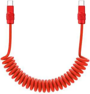 chubbycable Curly Chubby 240W Coiled USB C Fast Charging Cable Durable Braided Charger Cord for Car Compatible with iPhone 17-15 Series iPad, Red+Red, Type-C to Type-C, 2.13FT-6.56FT