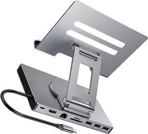 USB C Laptop Docking Station Stand, 5 Levels Adjustable USB C Laptop Stand 6 in 1 USB C Dock Tablet Stand with HDMI, Ethernet, PD, USB-C Data, 2 USB3.0 for MacBook Pro/Air