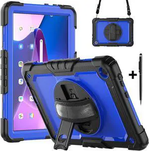 BONAEVER Case for Lenovo Tab M10 3rd Gen 10.1 inch 2022 TB328FU TB328XU with Screen Protector Shockproof Protective Cover with Pen Holder Stand and Shoulder Strap Stylus Pen