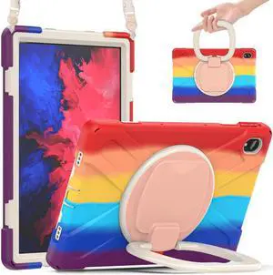BONAEVER Case for Lenovo Tab P11 Plus / P11 11 inch 2022 2021 2020 Model TB-J606F / TB-J606X / TB-J616F / TB-J607F with Stand and Strap Shoulder Strap Shockproof Protective Cover Rainbow Red