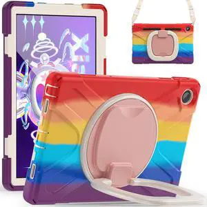 BONAEVER For Lenovo Tab M10 Plus Case 10.6 inch 2022 [3rd Gen] Mdoel TB-125F TB-128F Shockproof Rugged Protective Cover with Stand / H & Shoulder Strap / Pencil Holder Rainbow Red