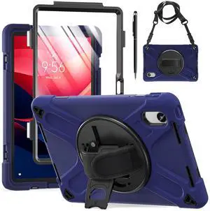 WERLEO Case for Lenovo Tab M11 / K11 LTE 11 inch 2024 TB330FU TB330XU TB-331FC Shockproof Cover with Screen Protector + Rotating Hand Strap & Stand + Shoulder Strap + Universal Stylus Pen Navy Blue