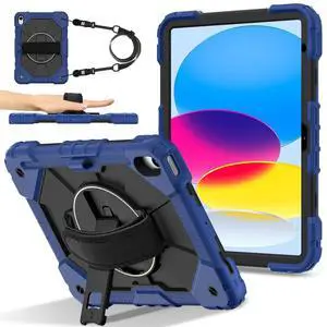 WERLEO Case for iPad 10.2 inch 2021 2020 2019 9th 8th 7th Generation with Rotating Stand Pencil Holder Hand/Shoulder Strap, Heavy Duty Shockproof Protective Cover Navy Blue