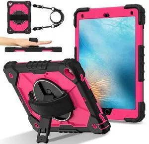 WERLEO Case for iPad 9.7 Inch 2018 2017 6th/5th Generation/iPad Pro 9.7/Air 2 with Rotating Stand Pencil Holder Hand/Shoulder Strap, Heavy Duty Shockproof Protective Cover Rose Red