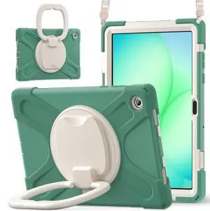 WERLEO Protecive Case for Samsung Galaxy Tab A11 Plus / A11+ 11 Inch 2025 Shockporoof Cover with Pencil Holder Rotating Hand Strap & Stand Shoulder Strap Dark Green