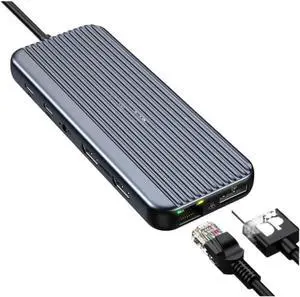 11 Ports USB C HUB Docking Station RJ45 Adapter to HDMI-Compatible 4K V/GA SD/TF Card 3.5MM AUX 11-in-1 for PC Splitter(11 in 1)