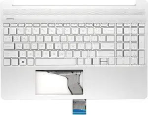Laptop Replacement-Upper Case Palmrest & Backlit Keyboard Touchpad Assembly for HP 15S-DY,15S-DW,15S-DU Models in Natural Silver with Fingerprint Reader P/N:L52154-001