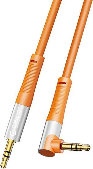 ORICO 3.5mm Aux Cable Jack Audio Cord Male to Male Hi-Fi Sound Liquid Silicone for Headphones iPhone Speaker Car iPad 0.5ft Left Angle-Orange