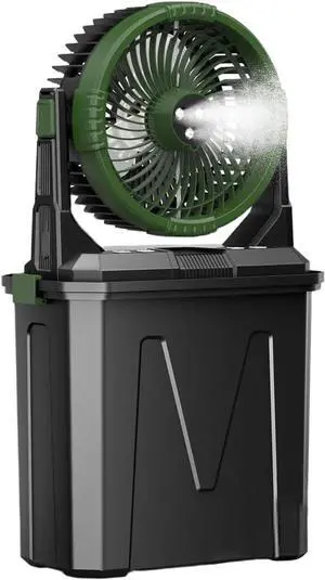 Outdoor Misting Cooling Fan Rechargeable 6L Bucket Swing 3Spray Nozzles Remote Operated For Camping Patios Activity Rechargeable