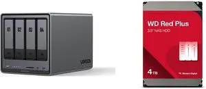 UGREEN NASync DXP4800 Plus, 4-Bay NAS with Intel Pentium Gold, 5-Core CPU (Up to 4.40 GHz), 8GB DDR5, 1x 2.5GbE, 1x 10GbE, 2x SD - 12th Gen 5-core Intel Processor (Diskless) WD Red Plus 4TB NAS Hard Disk Drive - 5400 RPM Class SATA 6Gb/s, C