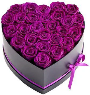 Forever Flowers, 27 Preserved Roses in Heart Shape Box, Eternal Flowers Immortal Bouquet Birthday Present for Women Her Wife Mothers, Anniversary, Valentine's Day,Christmas, Purple