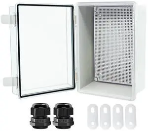 Junction Box, Hinged Clear Cover IP67 Waterproof ABS Project Box with 2 NPT 1/2" Cable Gland, Electrical Box Enclosure with Mounting Plate & Wall Bracket 11.4 x 7.5 x 5.5inch(290x190x140mm)