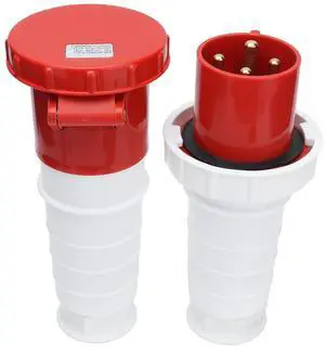 Hyuduo 380-415V 63A Electrical Cord Connector, IP67 Waterproof 4 Pin Power Plug Socket Kit for 3P+E Wiring Projects, Industrial Connector
