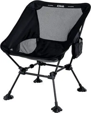 iClimb- Ultralight Compact Camping Folding Beach Chair with Anti Sinking Large Feet and Back Support Webbing (Black Square Frame 2Pc)