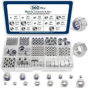 360-piece 304 material metric hexagonal nut and lock nut combination set,M3-M12 cross-border combination assembly
