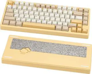 KEEBMONKEY WOBKEY Rainy 75 Aluminum Violet/Cocoa Switches Mechanical Keyboard with Superior Acoustics, Wired, BT, 2.4G Wireless Connectivity, RGB/FR4/Silver SUS304/7000mAh/Cocoa Switch (Pro - Yellow)
