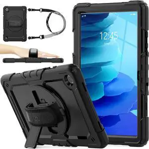 Case for Galaxy Tab A7 10.4 2022/2020 with Screen Protector, 360 Rotating Stand & Hand Strap, Drop-Proof Case for Galaxy Tab A7 10.4'' (T503/T509/T500/T505/T507), Black