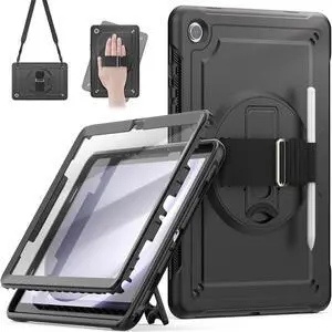 WERLEO Protective Case for Samsung Galaxy Tab A11 8.7 Inch 2025, Galaxy Tab A9 8.7" 2023 Shockproof Cover with Screen Protector, Pencil Holder, 360 Rotating Stand, Hand Strap, Shoulder Strap