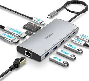 12 in 1 Triple 4K Docking Station with 2 HDMI, DP, 2x10G USB C, 2×USB-A2.0, 100W PD, SD/TF, 1000Mbps Ethernet, 3.5MM Audio, Revodok Pro USBC Hub Multiple Adapter for MacBook, DELL, HP and More- Brand: Ugreen
