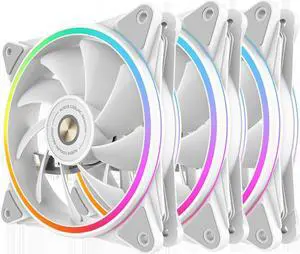 Halo Pro PC Case Fan, 120mm AURA SYNC, 5v3 pin ARGB, Small 4pin PWM, 360 Degree Lighting, Improved structural Support, Silent Cooling Technology, Hydraulic Bearing White 3 Packs