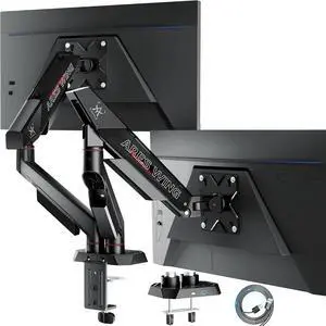ARES WING Single Monitor Arm for 17-40 Inch Flat Curved Ultrawide Screens Up to 26.5lbs, Fully Adjustable Single Monitor Mount, C-Clamp & Grommet Base, 75/100 Vesa Mount, Black