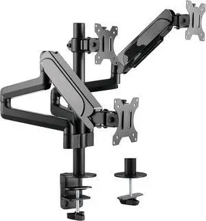 PrimeCables Triple Monitor Stand Mount Fit Three 17 to 27 Inch LCD Computer Screens, Heavy-Duty Adjustable Gas Spring Desk Mount, Each Arm Holds Up to 15.4 lbs with Grommet Kit, Clamp, Black