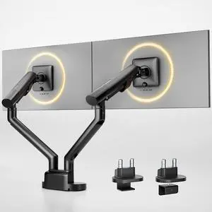 ARES WING Heavy Duty Dual Monitor Arm, Fully Adjustable Monitor Mount for 17-35 Inch Flat Curved Ultrawide Screens Up to 26.5lbs with USB A/C, C-Clamp & Grommet Base, 75/100 Vesa Mount, Black