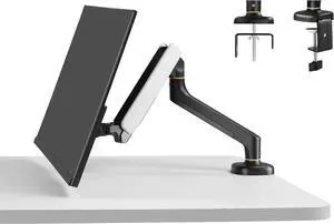 Fydeamer Single Monitor Arm, Heavy Duty Gas Spring Monitor Stand for 17-35 Inch Screens up to 24.2 lbs, VESA Desk Mount with C-Clamp & Grommet Base, White