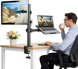 Adjustable Monitor Arm with Laptop Tray Laptop Monitor Dual Arm Bracket for 17 to 23 Inches Computer Screens Monitor and Laptop Mount, Home Office VESA Mounts