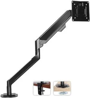 Single Monitor Arm Mount 17 to 32 inch Articulating Gas Spring Arm 4 to 13.5lbs Adjustable Vesa 100 * 100mm Desk Stand with Clamp and Grommet Black