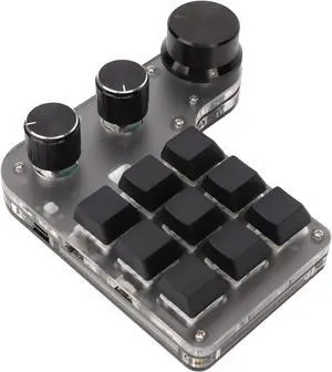9 Keys Programmable Mini Macro Mechanical Gaming Keyboard, One Handed USB Type C Wired for Office, Customizable Function with 3 Knobs, On Board Storage, Suitable for Graphic Desig