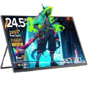 UPERFECT 24.5" 240Hz Portable Gaming Monitor - FHD 1080P IPS Display with Foldable LS Stand, USB-C One Cable for Power & Video, 500 Nits, Built-in Speakers, VESA Mount