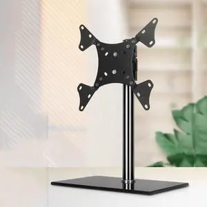 Single Monitor Desk Stand, Heavy Duty Tempered Glass Base, Fits 12-27 Inch Screens, Adjustable Height, Holds Up to 35kg